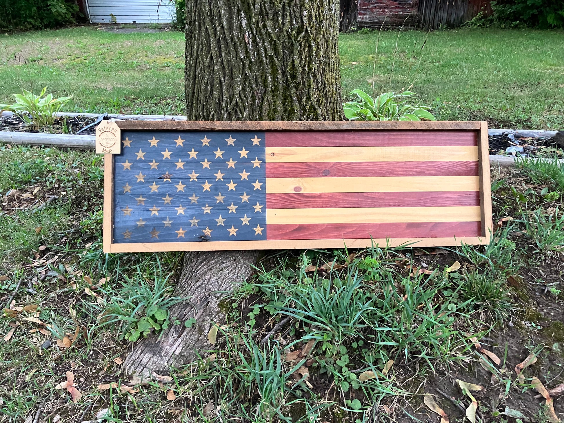 The flag is donated by American Rustic Works. 14"x 36" and made from reclaimed Niagara county barnwood!